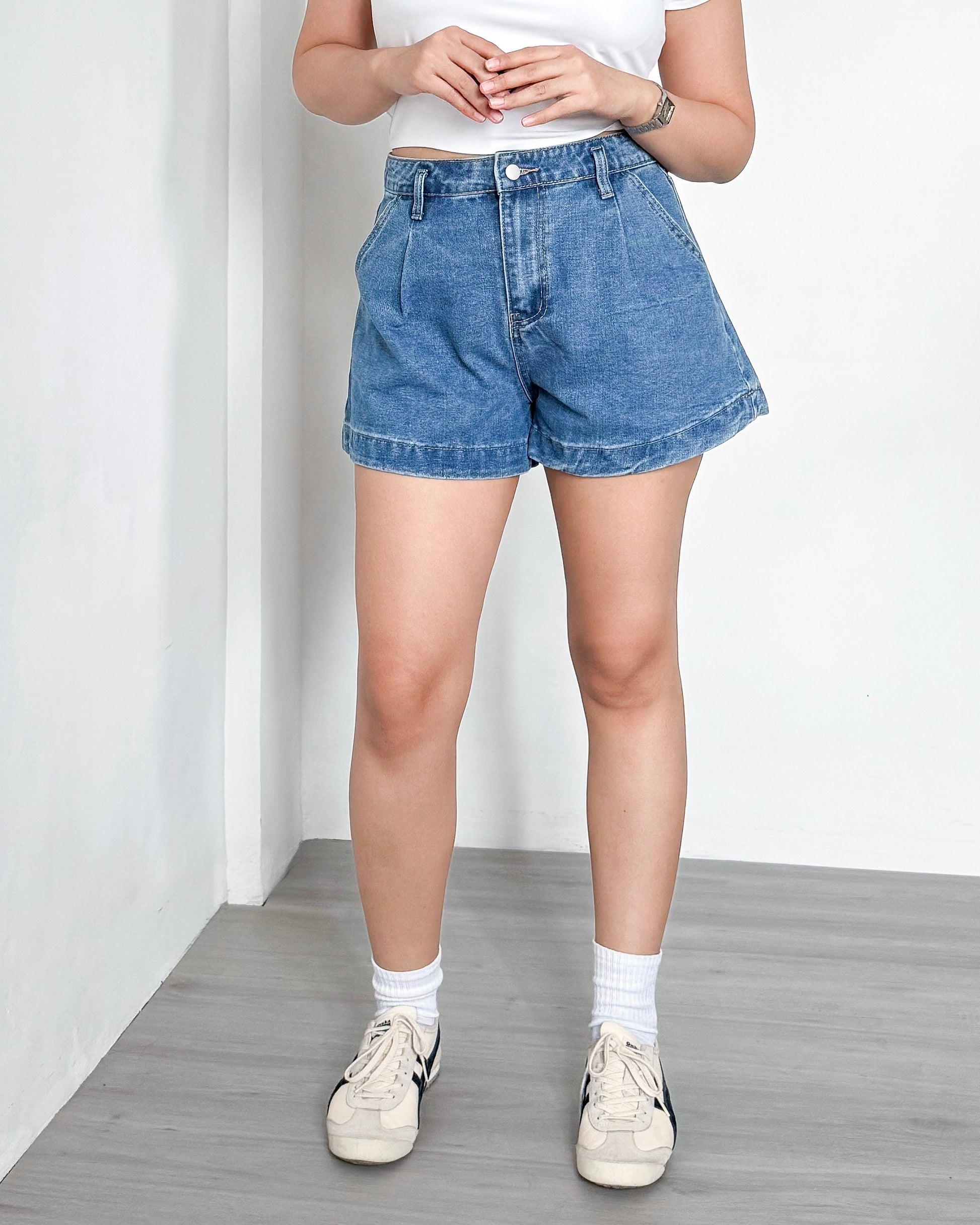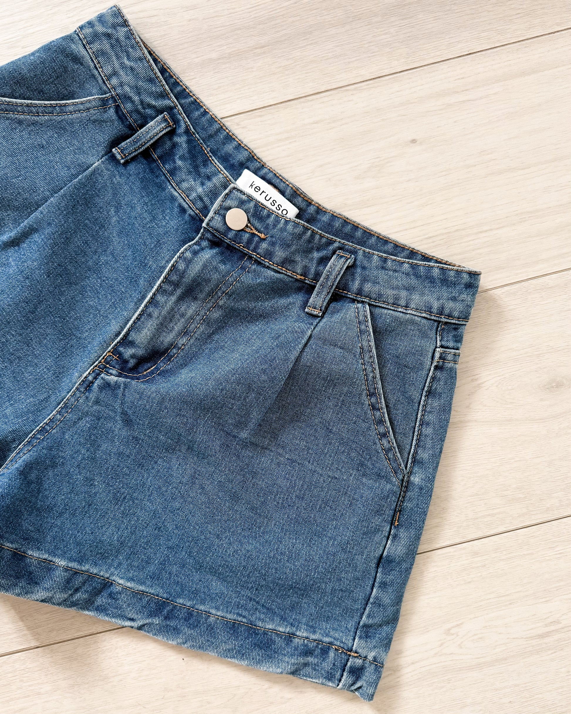 Isabela Pleated Wide Leg Denim Shorts